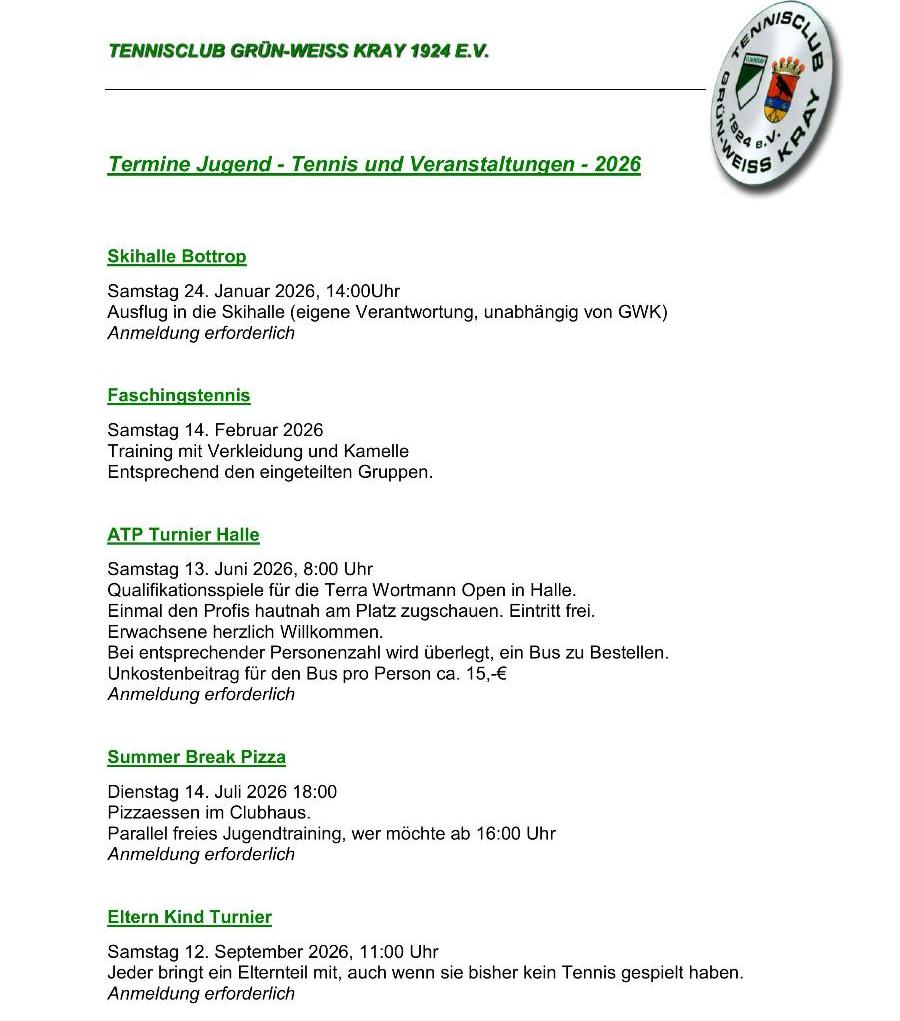das Jahr verteilt mehrere Jugendturniere und