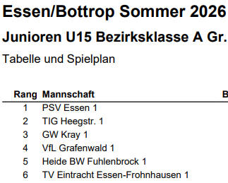 Gruppeneinteilung TVN Jugend Sommer 2026