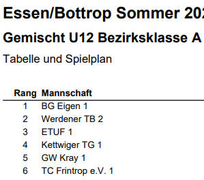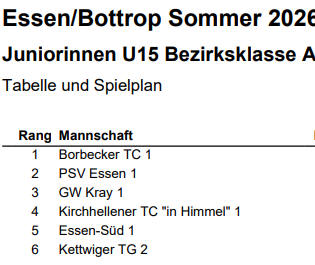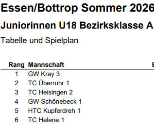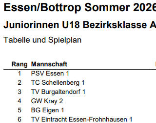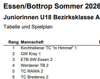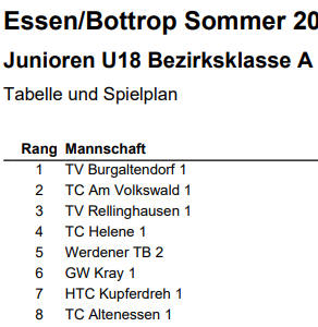 männlichen Jugend beim TC Grün-Weiß Kray 1924 auf den Ganzjahresplätzen